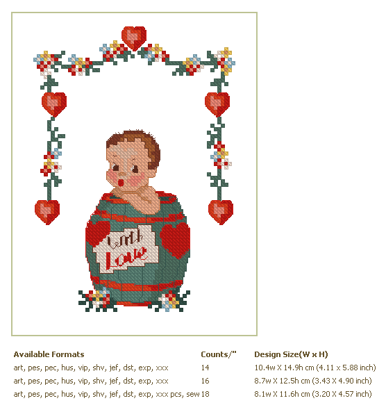Formats: ART, PES, HUS, VIP, SHV, JEF, EXP, XXX, DST, VP3, PDF-CHART