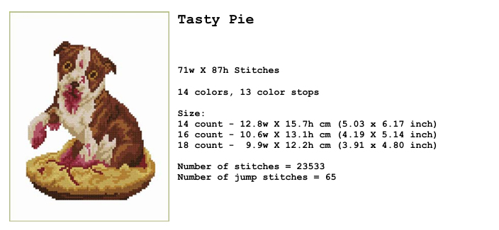 When the format allows, each design is provided in three sizes (counts). You can view the dimensions of each design and a larger image by clicking on the small preview images below.