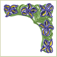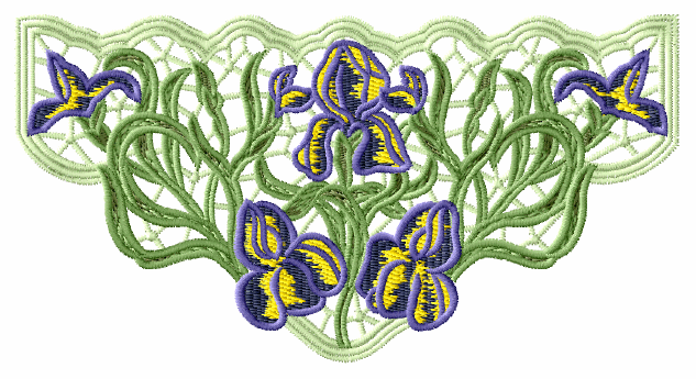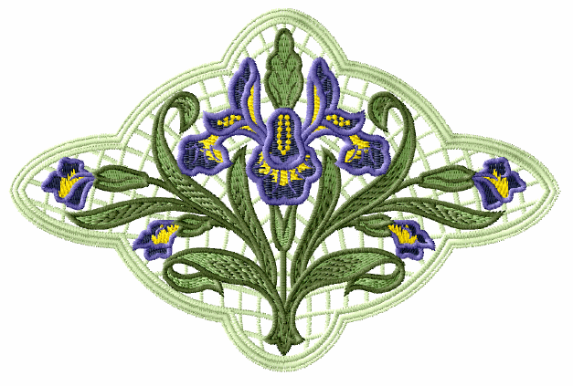 Unleash your creativity with our iris Lace embroidery designs. Featuring enchanting and colorful Iris Lace patterns, these unique designs bring a magical touch to any embroidery project, making them perfect for adding flair and imagination to your creations.
