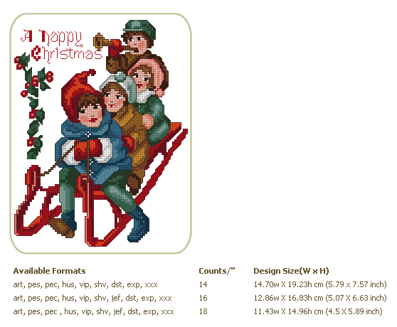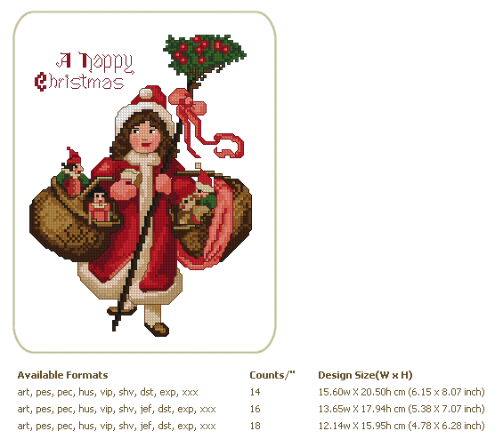 Formats: ART, PES, HUS, VIP, SHV, JEF, EXP, XXX, DST, VP3, CHART-PDF