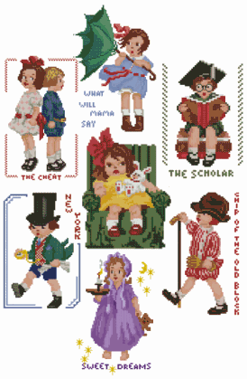 Set includes: 5 Cross Stitch Embroidery Designs in three counts: 14, 16 and 18