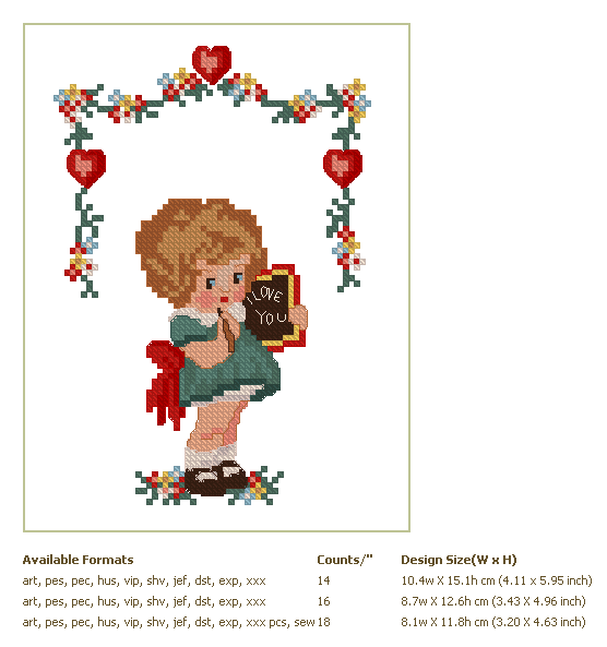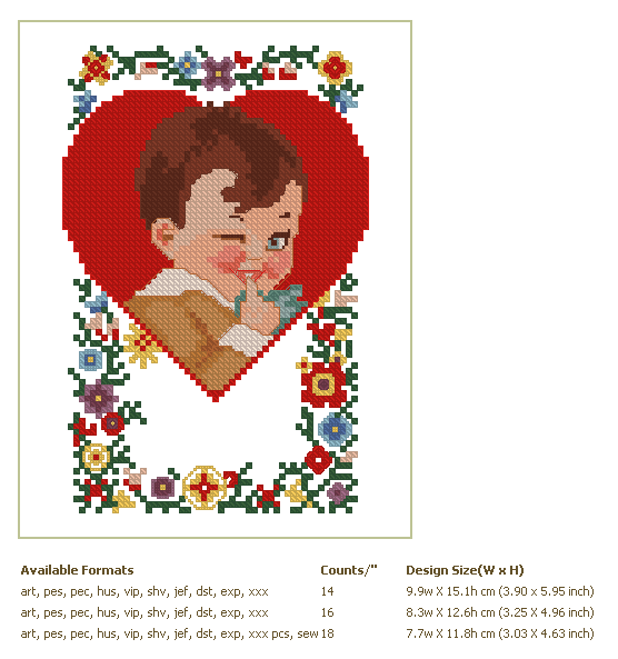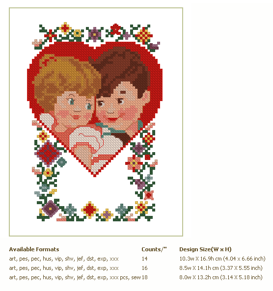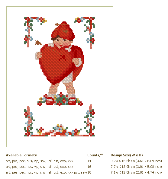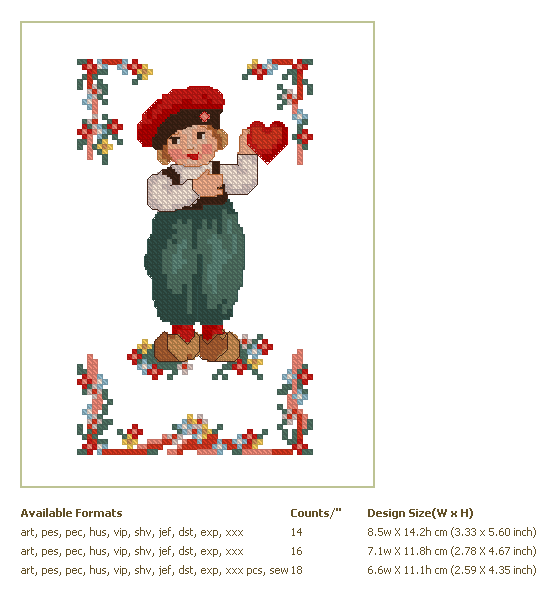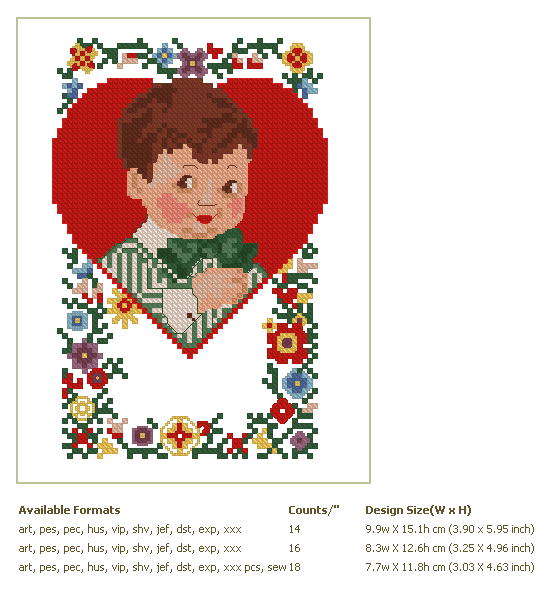 Formats: ART, PES, HUS, VIP, SHV, JEF, EXP, XXX, DST, VP3, PDF-CHART