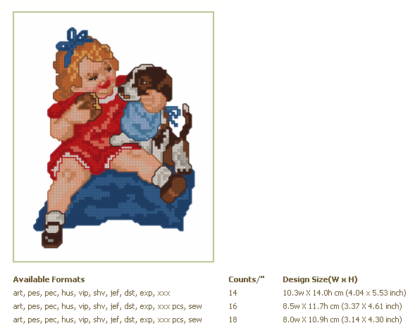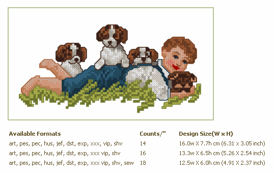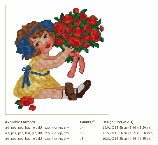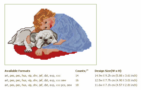 Formats: ART, PES, HUS, VIP, SHV, JEF, EXP, XXX, DST, VP3