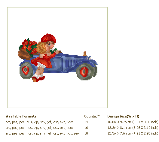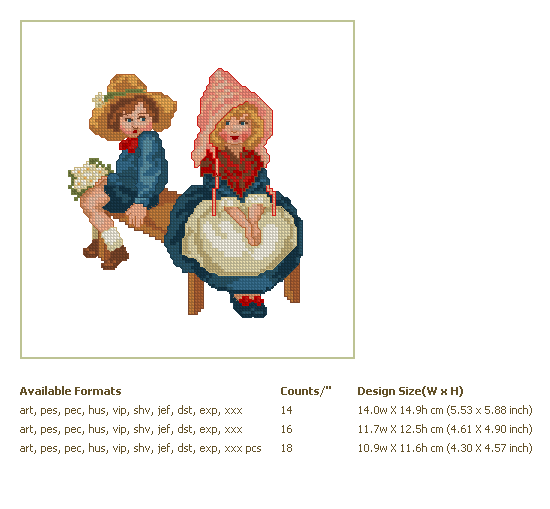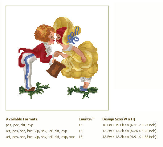 Formats: ART, PES, HUS, VIP, SHV, JEF, EXP, XXX, DST, VP3, PDF-CHART