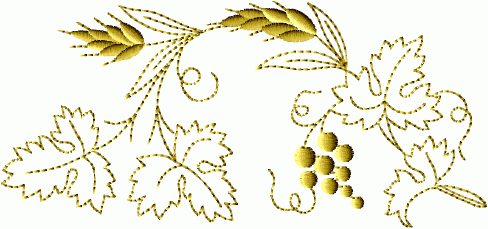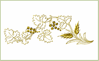 Border #1 Stitches: 6949 Size: 2.32" x 6.89" Colors: 1 | Wheat & Grapes #2 Stitches: 3009 Size: 3.74" x 3.14" Colors: 1 |