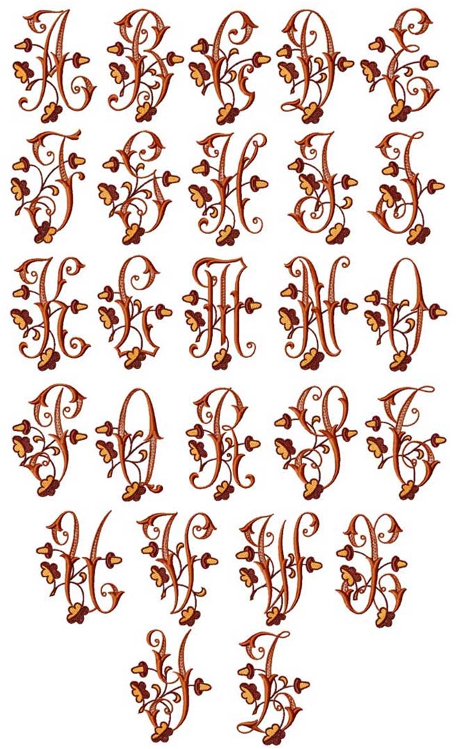 Acorns Alphabet machine embroidery designs