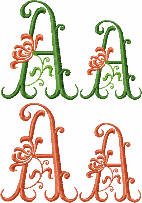Set includes: 104 Designs - all capitals, each letter in 2 sizes, mono-color and multicolored versions.