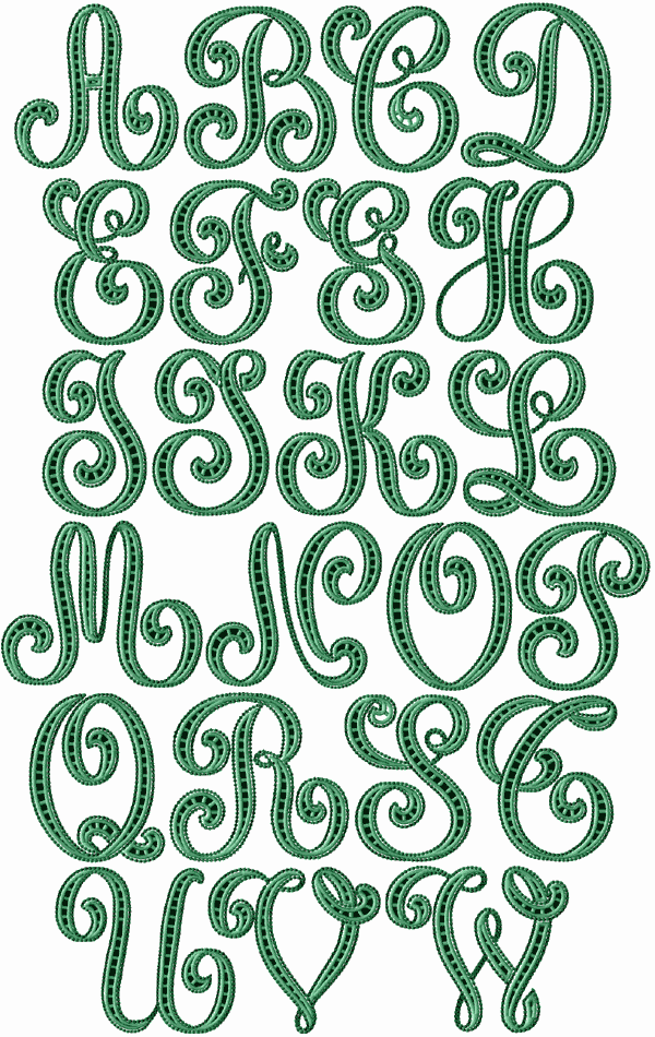 Set includes: 52 Cutwork Designs - all capitals, each letter in 2 sizes