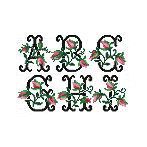 This alphabet is available in PDF format for Counted (Hand) cross stitching. Choose CHART format from drop down menu.