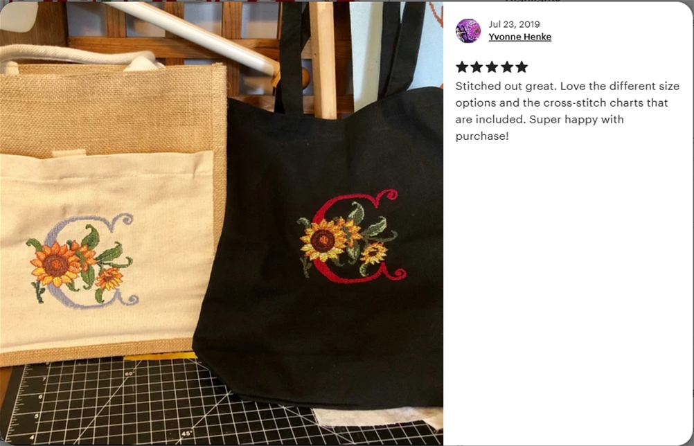 Set includes: 78 Cross Stitch Designs - Upper-Case in 3 count sizes. 14 Counts ,16 Counts ,18 Counts