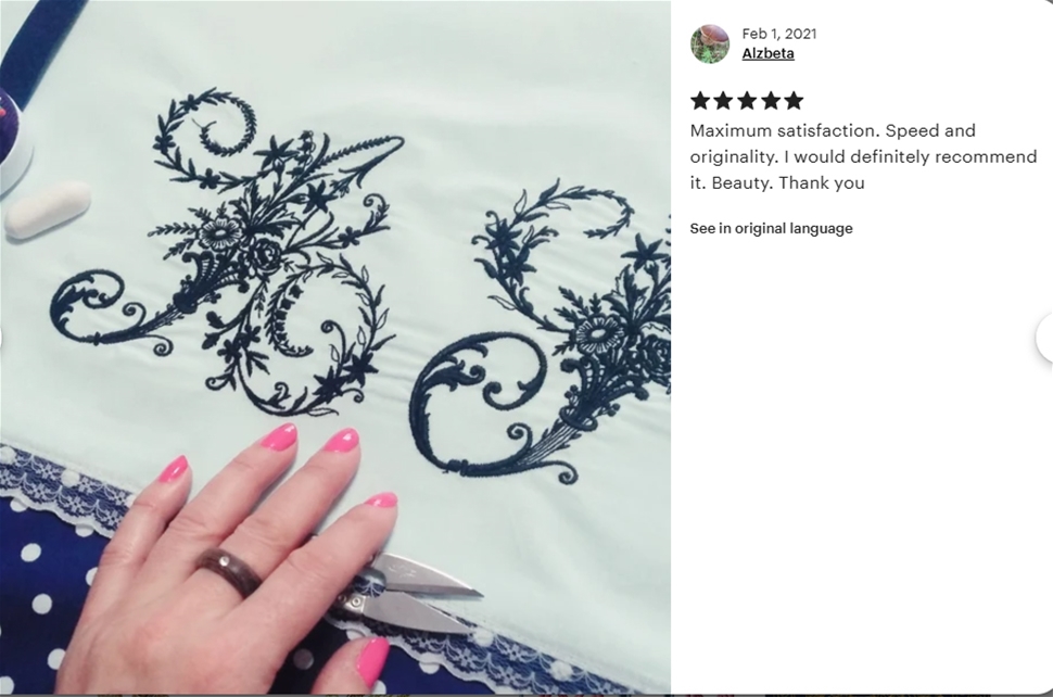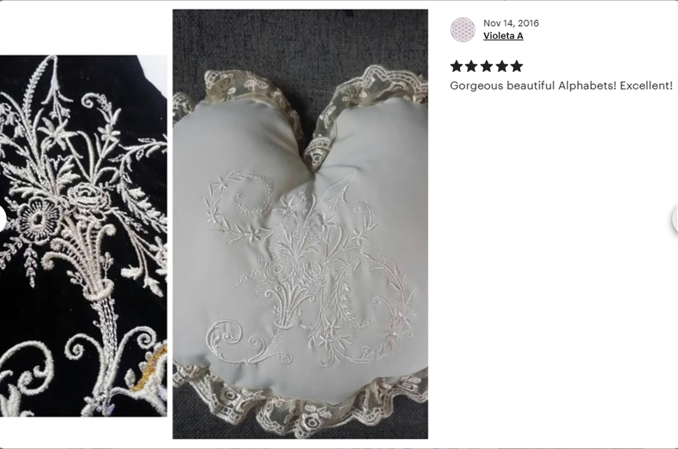 This is a classic whitework alphabet in Victorian style. Of course, you may embroider the letters in any color you want, not necessarily white. Great choice to decorate a lady's gift, a ring bearer pillow, baby girl blanket and so on....