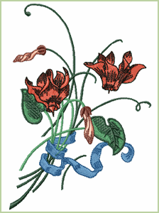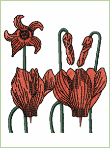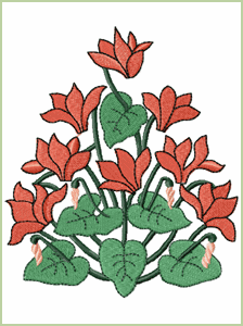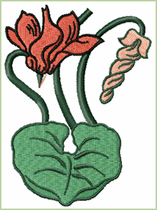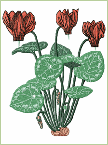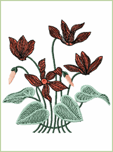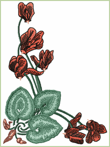 This set includes 12 freestyle embroidery designs of cyclamens. These designs are perfect for clothing, home décor items, or unique gifts. A great match to the 'Cyclamens Lace' collection.