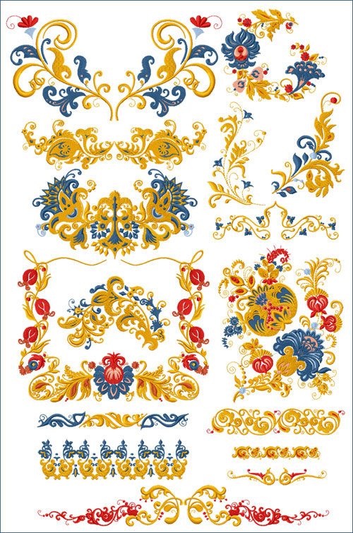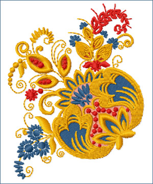 Flourish Motif Colors: 6 Stitches: 21052 Size: 4.40" x 5.51" | Elegant Stem Colors: 3 Stitches: 4677 Size: 2.23" x 4.01" |