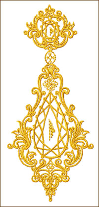 The Chandelier Colors: 1 Stitches: 14326 Size: 2.72" x 6.23" | The Pendant Colors: 1 Stitches: 11794 Size: 2.36" x 4.31" |