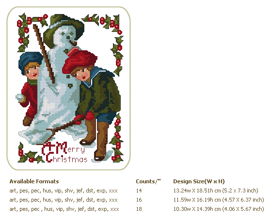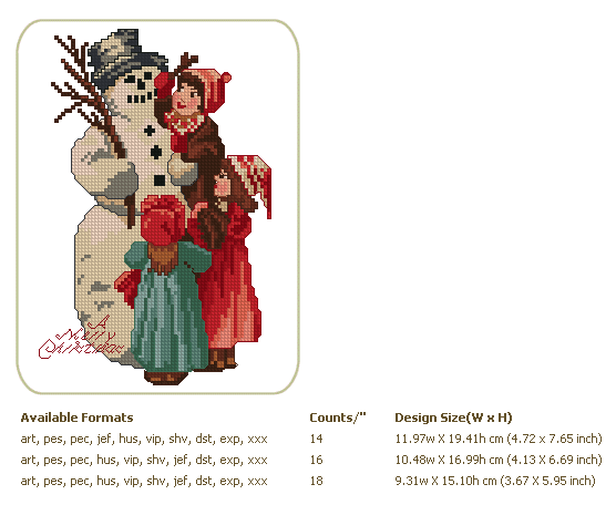 Formats: ART, PES, HUS, VIP, SHV, JEF, EXP, XXX, DST, VP3, CHART-PDF