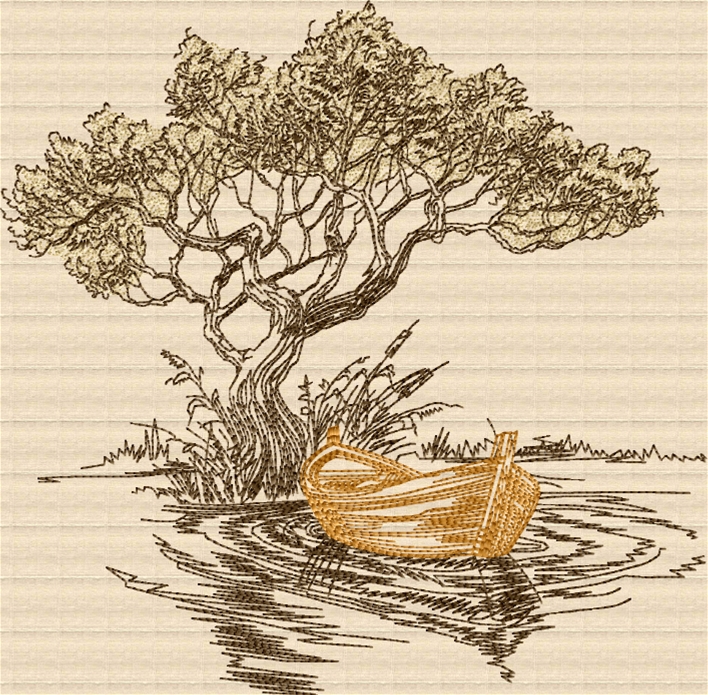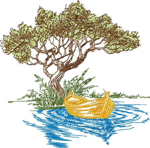 Bayou captures the serene beauty of southern landscapes, featuring water, lush flora, and tranquil elements. This design brings nature's peaceful ambiance to life, perfect for adding an earthy touch to clothing, accessories, and home decor.