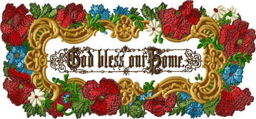 Bring warmth and blessing to your space with the God Bless Our Home embroidery design. Featuring a richly decorated frame with vibrant flowers and elegant lettering, this design is perfect for wall hangings, cushions, or heirloom décor pieces.