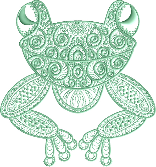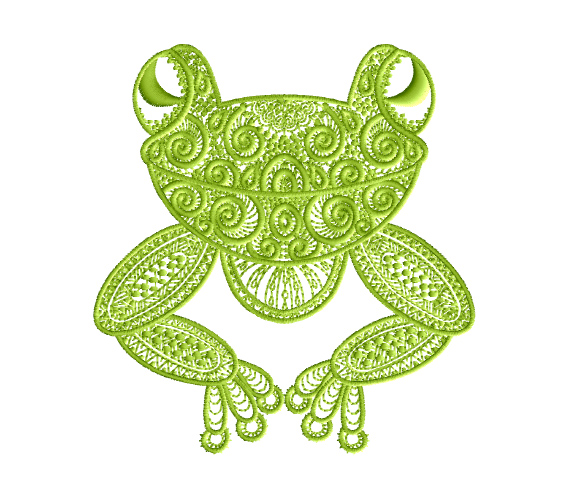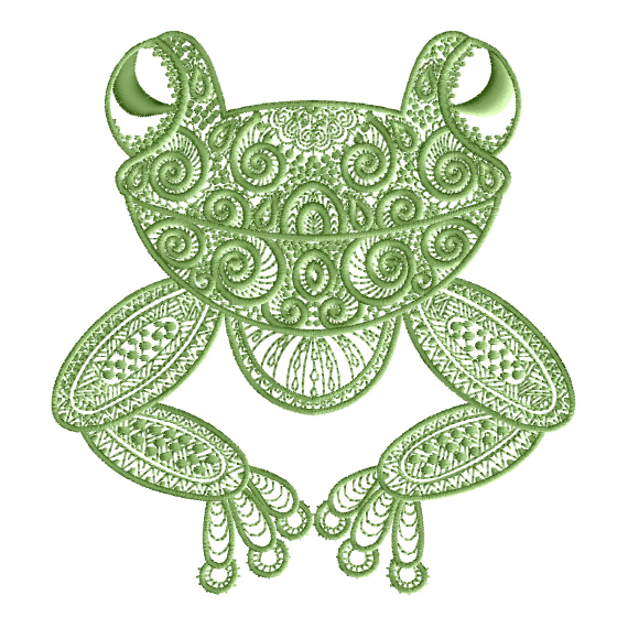 This Ornamental Frog embroidery design brings a playful yet sophisticated touch with its swirling patterns and lace-like textures. Ideal for decorative pillows, nature-themed crafts, and statement stitching.