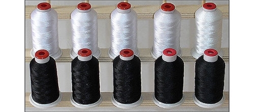Thread weight is 40 wt - ultimate for almost all embroidery designs you can purchase. It's very shiny, smooth and looks beautiful when embroidered.